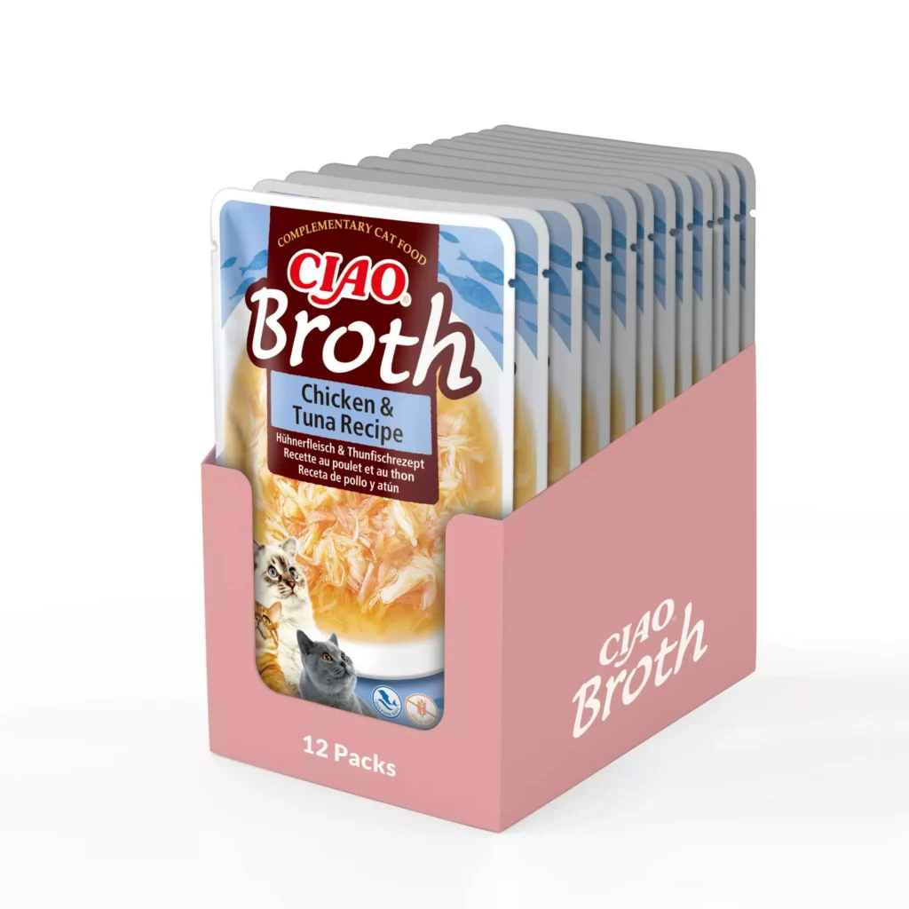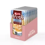 Është një ushqim i lëngshëm për mace me shirita pule në salcë pule të shijshme të pjekur, kjo recetë kërkon edhe ton. Bërë me mish gjoksi pule 100% natyral dhe salmon të Paqësorit të kapur në egër.